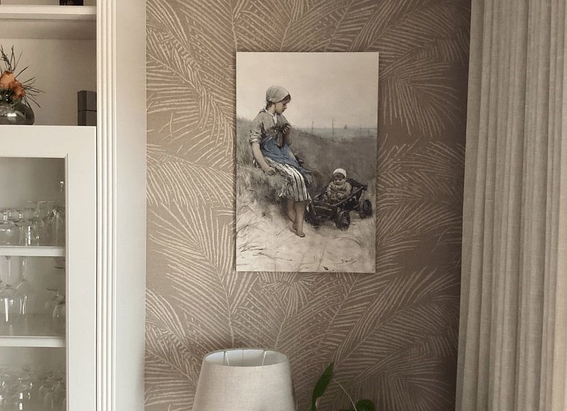 The warm, earthy tones and calm atmosphere of Bernardus Johannes Blommers make these artworks a good fit for the living room. The nostalgic charm and gentle compositions create a welcoming mood that invites conversation and relaxation. Consider placing a landscape format above your sofa or a portrait piece near a reading corner. The beige and taupe hues blend naturally with soft textiles and wooden furniture, while the olive green accents add depth without overwhelming the space.