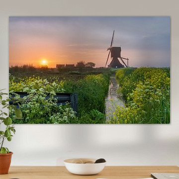 Sunrise at mill in the polder by Moetwil en van Dijk - Fotografie