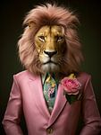 Lion in pink suit by Imagine as seamless wallpaper