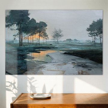 Buddha artworks pair beautifully with minimalist and Scandinavian interiors, where simplicity and natural materials take center stage. The taupe and beige tones blend seamlessly with light wood furniture and neutral textiles, while touches of blue or mauve add subtle depth without disrupting the calm. In bohemian spaces, combine the warmer brown shades with layered textures - think woven baskets, linen cushions, and natural fiber rugs. Poster works well for budget-friendly styling, while ArtFrame™ offers a modern aluminum frame in white or silver to match clean-lined interiors.