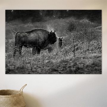 Bison, large and powerful animals of North America, most currently living in natural reserves. Do you have an interest in these creatures and want wall art of them? Our artists have made many impressive artworks of bison and have put them together in the Bison wall art collection. Buy dynamic photo prints on acrylic, or buy an illustration on canvas, poster, wallpaper and many more.
