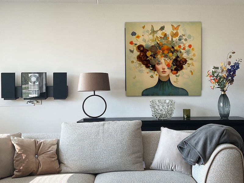 Dreamy, delicate imagery brings a sense of calm to bedrooms and reading nooks where you want to unwind. The soft, tranquil atmosphere in The butterfly and the flower also works well in bathrooms or dressing areas - spaces where a gentle, unhurried mood feels right. Choose rooms where you naturally slow down and take a breath.