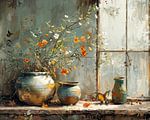Modern Still Life: Vase with Sparrow by By Marjolein Design on canvas