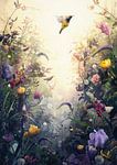 Flower still life with robin by By Marjolein Design on ArtFrame