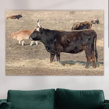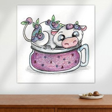Looking for cosy cow paintings? Buy cheerful and colourful cow canvas prints here, or soothing photo prints of cows in the meadow. This beautiful rural wall art is versatile and can be combined with any interior and style. Country photography and cow paintings can be purchased from us on a customised basis and on high-quality materials. Think of impressive wallpaper with cows in the barn, or colourful cow paintings on acoustic panels to reduce the reverberation in your home.