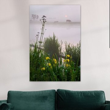 Looking for cosy cow paintings? Buy cheerful and colourful cow canvas prints here, or soothing photo prints of cows in the meadow. This beautiful rural wall art is versatile and can be combined with any interior and style. Country photography and cow paintings can be purchased from us on a customised basis and on high-quality materials. Think of impressive wallpaper with cows in the barn, or colourful cow paintings on acoustic panels to reduce the reverberation in your home.