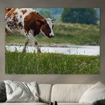 Looking for cosy cow paintings? Buy cheerful and colourful cow canvas prints here, or soothing photo prints of cows in the meadow. This beautiful rural wall art is versatile and can be combined with any interior and style. Country photography and cow paintings can be purchased from us on a customised basis and on high-quality materials. Think of impressive wallpaper with cows in the barn, or colourful cow paintings on acoustic panels to reduce the reverberation in your home.