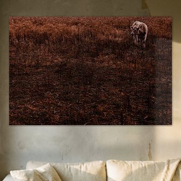 Looking for cosy cow paintings? Buy cheerful and colourful cow canvas prints here, or soothing photo prints of cows in the meadow. This beautiful rural wall art is versatile and can be combined with any interior and style. Country photography and cow paintings can be purchased from us on a customised basis and on high-quality materials. Think of impressive wallpaper with cows in the barn, or colourful cow paintings on acoustic panels to reduce the reverberation in your home.