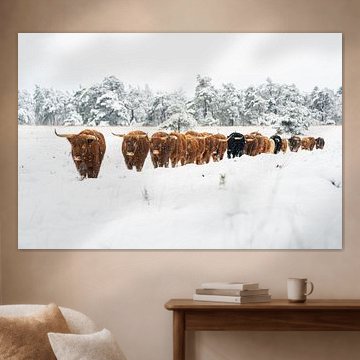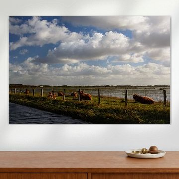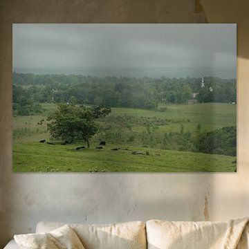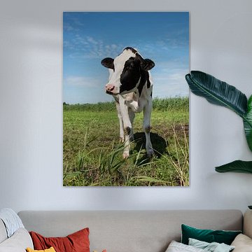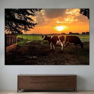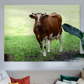 Looking for cosy cow paintings? Buy cheerful and colourful cow canvas prints here, or soothing photo prints of cows in the meadow. This beautiful rural wall art is versatile and can be combined with any interior and style. Country photography and cow paintings can be purchased from us on a customised basis and on high-quality materials. Think of impressive wallpaper with cows in the barn, or colourful cow paintings on acoustic panels to reduce the reverberation in your home.