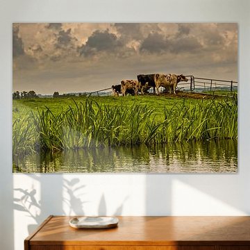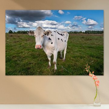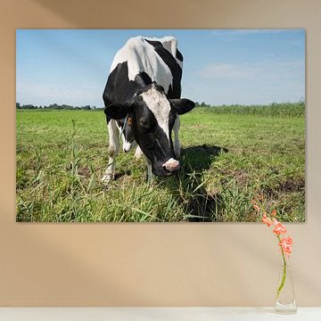Looking for cosy cow paintings? Buy cheerful and colourful cow canvas prints here, or soothing photo prints of cows in the meadow. This beautiful rural wall art is versatile and can be combined with any interior and style. Country photography and cow paintings can be purchased from us on a customised basis and on high-quality materials. Think of impressive wallpaper with cows in the barn, or colourful cow paintings on acoustic panels to reduce the reverberation in your home.