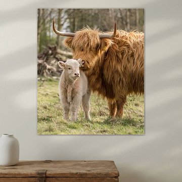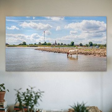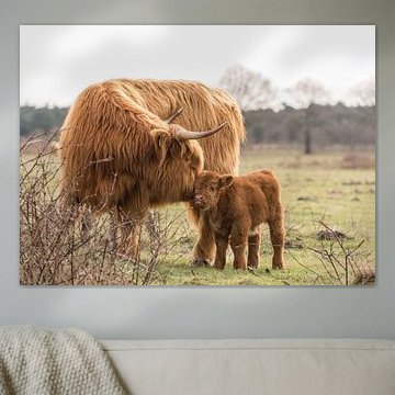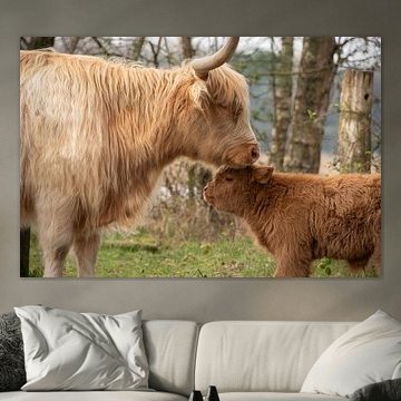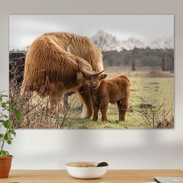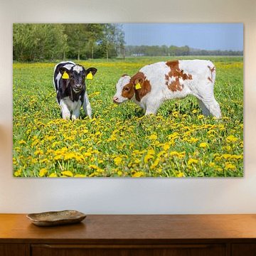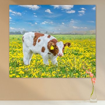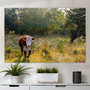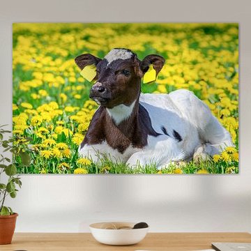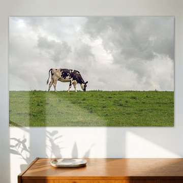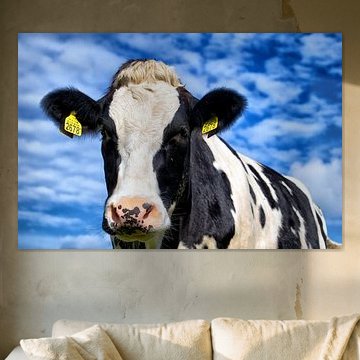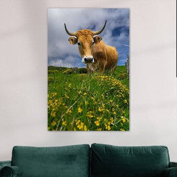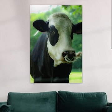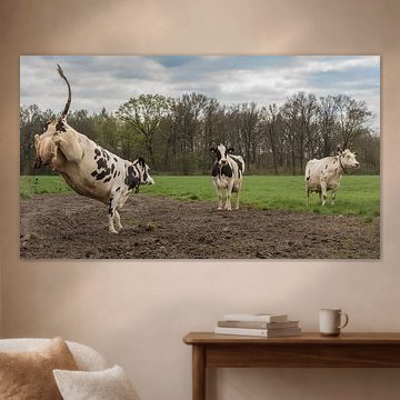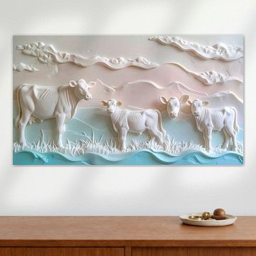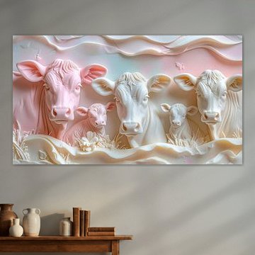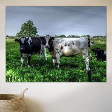 Looking for cosy cow paintings? Buy cheerful and colourful cow canvas prints here, or soothing photo prints of cows in the meadow. This beautiful rural wall art is versatile and can be combined with any interior and style. Country photography and cow paintings can be purchased from us on a customised basis and on high-quality materials. Think of impressive wallpaper with cows in the barn, or colourful cow paintings on acoustic panels to reduce the reverberation in your home.
