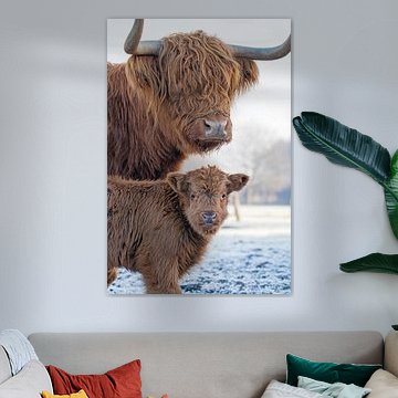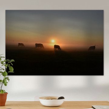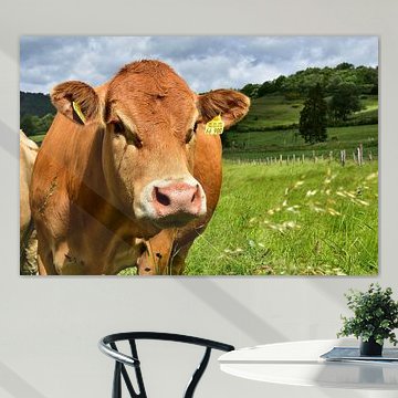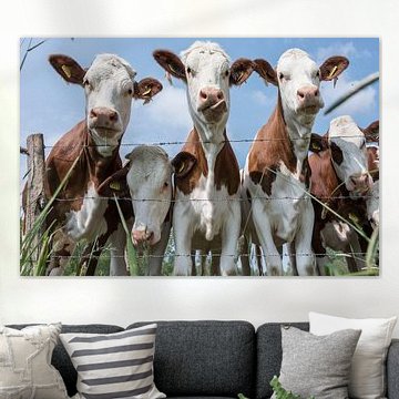Looking for cosy cow paintings? Buy cheerful and colourful cow canvas prints here, or soothing photo prints of cows in the meadow. This beautiful rural wall art is versatile and can be combined with any interior and style. Country photography and cow paintings can be purchased from us on a customised basis and on high-quality materials. Think of impressive wallpaper with cows in the barn, or colourful cow paintings on acoustic panels to reduce the reverberation in your home.