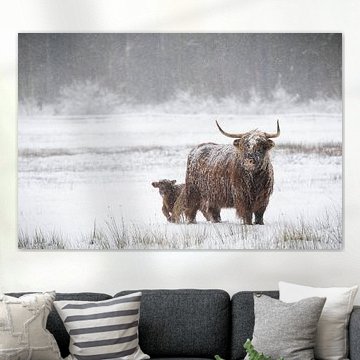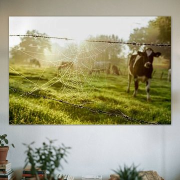 Looking for cosy cow paintings? Buy cheerful and colourful cow canvas prints here, or soothing photo prints of cows in the meadow. This beautiful rural wall art is versatile and can be combined with any interior and style. Country photography and cow paintings can be purchased from us on a customised basis and on high-quality materials. Think of impressive wallpaper with cows in the barn, or colourful cow paintings on acoustic panels to reduce the reverberation in your home.