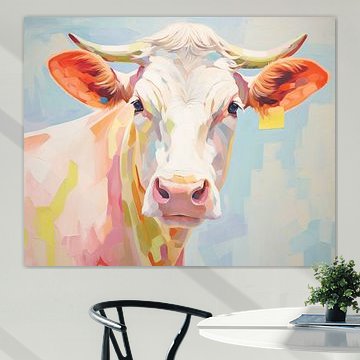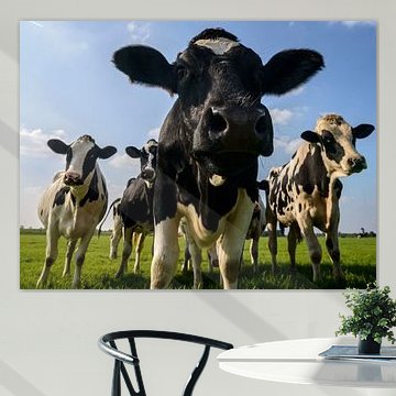 Looking for cosy cow paintings? Buy cheerful and colourful cow canvas prints here, or soothing photo prints of cows in the meadow. This beautiful rural wall art is versatile and can be combined with any interior and style. Country photography and cow paintings can be purchased from us on a customised basis and on high-quality materials. Think of impressive wallpaper with cows in the barn, or colourful cow paintings on acoustic panels to reduce the reverberation in your home.