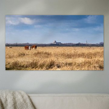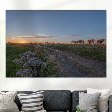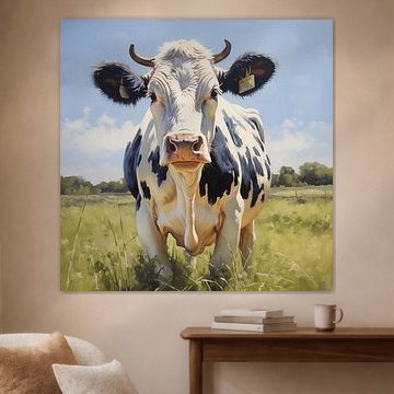 Looking for cosy cow paintings? Buy cheerful and colourful cow canvas prints here, or soothing photo prints of cows in the meadow. This beautiful rural wall art is versatile and can be combined with any interior and style. Country photography and cow paintings can be purchased from us on a customised basis and on high-quality materials. Think of impressive wallpaper with cows in the barn, or colourful cow paintings on acoustic panels to reduce the reverberation in your home.