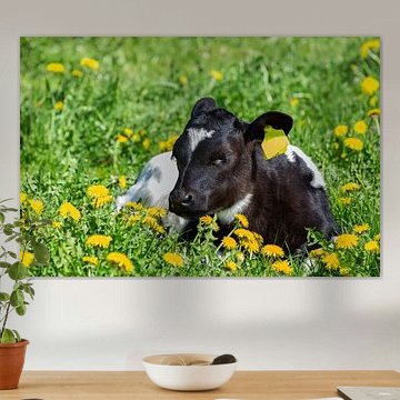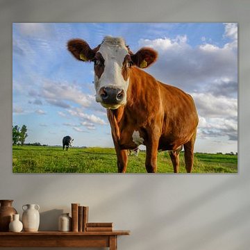 Looking for cosy cow paintings? Buy cheerful and colourful cow canvas prints here, or soothing photo prints of cows in the meadow. This beautiful rural wall art is versatile and can be combined with any interior and style. Country photography and cow paintings can be purchased from us on a customised basis and on high-quality materials. Think of impressive wallpaper with cows in the barn, or colourful cow paintings on acoustic panels to reduce the reverberation in your home.
