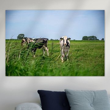 Looking for cosy cow paintings? Buy cheerful and colourful cow canvas prints here, or soothing photo prints of cows in the meadow. This beautiful rural wall art is versatile and can be combined with any interior and style. Country photography and cow paintings can be purchased from us on a customised basis and on high-quality materials. Think of impressive wallpaper with cows in the barn, or colourful cow paintings on acoustic panels to reduce the reverberation in your home.