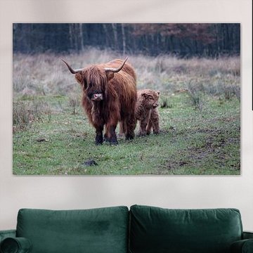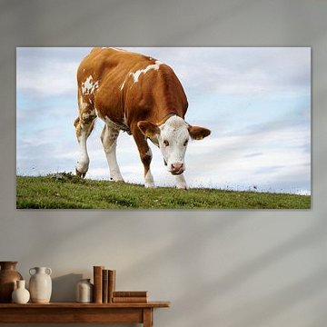 Looking for cosy cow paintings? Buy cheerful and colourful cow canvas prints here, or soothing photo prints of cows in the meadow. This beautiful rural wall art is versatile and can be combined with any interior and style. Country photography and cow paintings can be purchased from us on a customised basis and on high-quality materials. Think of impressive wallpaper with cows in the barn, or colourful cow paintings on acoustic panels to reduce the reverberation in your home.