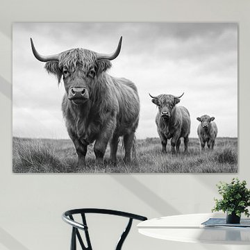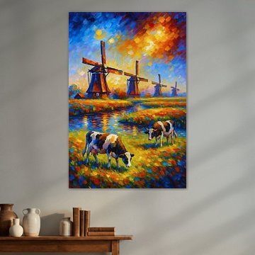 Looking for cosy cow paintings? Buy cheerful and colourful cow canvas prints here, or soothing photo prints of cows in the meadow. This beautiful rural wall art is versatile and can be combined with any interior and style. Country photography and cow paintings can be purchased from us on a customised basis and on high-quality materials. Think of impressive wallpaper with cows in the barn, or colourful cow paintings on acoustic panels to reduce the reverberation in your home.