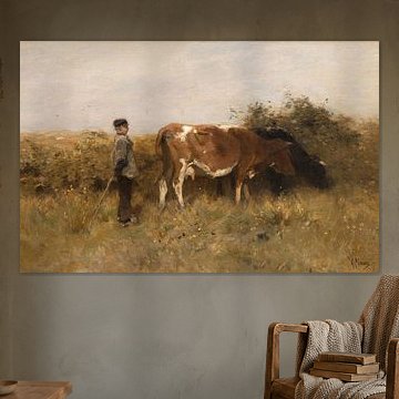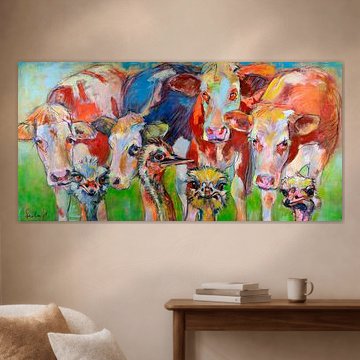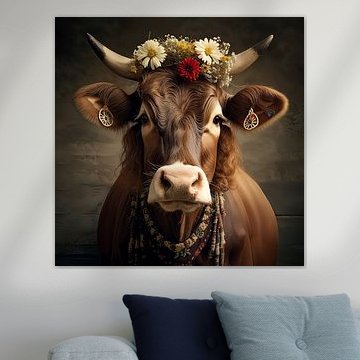 Looking for cosy cow paintings? Buy cheerful and colourful cow canvas prints here, or soothing photo prints of cows in the meadow. This beautiful rural wall art is versatile and can be combined with any interior and style. Country photography and cow paintings can be purchased from us on a customised basis and on high-quality materials. Think of impressive wallpaper with cows in the barn, or colourful cow paintings on acoustic panels to reduce the reverberation in your home.