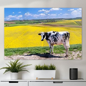 Looking for cosy cow paintings? Buy cheerful and colourful cow canvas prints here, or soothing photo prints of cows in the meadow. This beautiful rural wall art is versatile and can be combined with any interior and style. Country photography and cow paintings can be purchased from us on a customised basis and on high-quality materials. Think of impressive wallpaper with cows in the barn, or colourful cow paintings on acoustic panels to reduce the reverberation in your home.