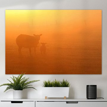 Looking for cosy cow paintings? Buy cheerful and colourful cow canvas prints here, or soothing photo prints of cows in the meadow. This beautiful rural wall art is versatile and can be combined with any interior and style. Country photography and cow paintings can be purchased from us on a customised basis and on high-quality materials. Think of impressive wallpaper with cows in the barn, or colourful cow paintings on acoustic panels to reduce the reverberation in your home.