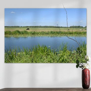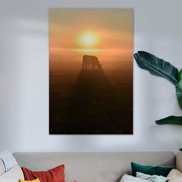 Looking for cosy cow paintings? Buy cheerful and colourful cow canvas prints here, or soothing photo prints of cows in the meadow. This beautiful rural wall art is versatile and can be combined with any interior and style. Country photography and cow paintings can be purchased from us on a customised basis and on high-quality materials. Think of impressive wallpaper with cows in the barn, or colourful cow paintings on acoustic panels to reduce the reverberation in your home.