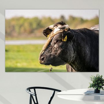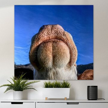 Looking for cosy cow paintings? Buy cheerful and colourful cow canvas prints here, or soothing photo prints of cows in the meadow. This beautiful rural wall art is versatile and can be combined with any interior and style. Country photography and cow paintings can be purchased from us on a customised basis and on high-quality materials. Think of impressive wallpaper with cows in the barn, or colourful cow paintings on acoustic panels to reduce the reverberation in your home.