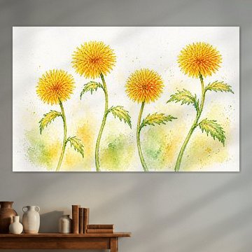 Dandelion artworks combine easily with botanical prints, abstract nature photography, or paintings featuring earthy tones. Create a small gallery wall mixing square and portrait formats, or pair a single large Dandelion piece with wooden shelves displaying dried flowers and ceramic vessels. The dreamy quality works well alongside soft textiles like wool throws or cotton cushions in complementary brown and green shades. Let the natural motif guide your styling - add potted plants or woven baskets to echo the organic feel throughout your room.