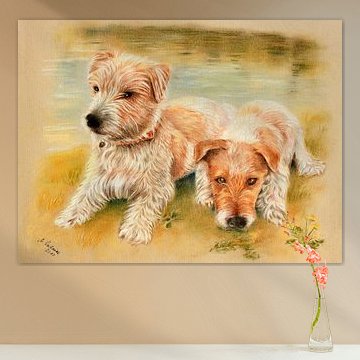 Are you a true dog lover? So are we! Our dog wall art collection is therefore quite extensive and diverse. Choose from several different dog breeds and different materials. Buy a beautiful portrait art print of a husky in the snow. Or buy photo prints of 2 greyhounds on canvas or acrylic glass. There are dog art prints for every style and interior available.