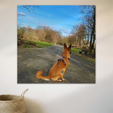 Dog artwork comes to life in portrait, square, and landscape formats. Portrait pieces work beautifully above narrow console tables in hallways or beside doorways, drawing the eye upward and adding character to transitional spaces. Square formats suit dining areas and home offices, where balanced proportions create a calm focal point. Choose landscape orientation when you want to fill the wall above a sofa or sideboard, especially in living rooms where horizontal lines complement the furniture beneath.
