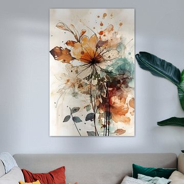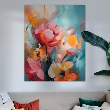 Modern and colourful still life with flowers in Japandi style by Japandi Art Studio