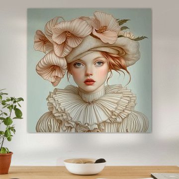 Girl with a pearl earring in orange peach colour by Vlindertuin-Art