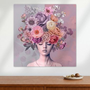Japandi, woman and Lotus flower in Pink and Gold by Caroline Guerain