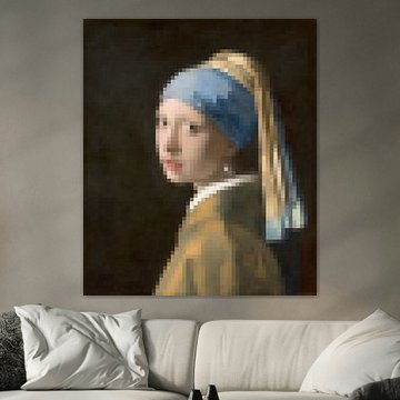 Artworks with rich detail and layered colour reward close viewing, making them ideal for intimate spaces like dining rooms or home offices. The mysterious, elegant mood in Vermeer Upside Down Girl with a Pearl Earring - pop art black creates a conversation piece that draws guests in and adds character to social areas.