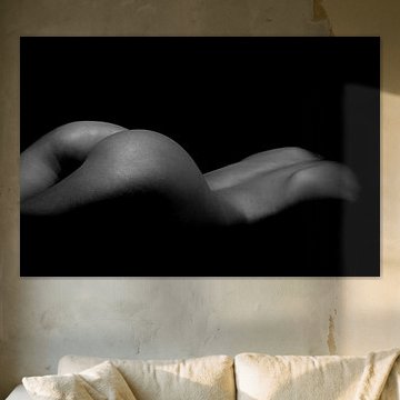 Low Key Bodyscape of a Woman's Back and Buttocks in Black/White by Art By Dominic
