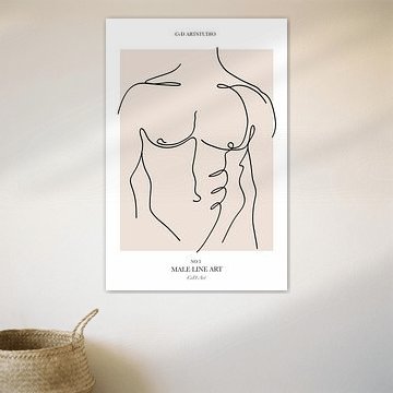 Male line art - male torso beige 2 by CvD Art - Kunst voor jou