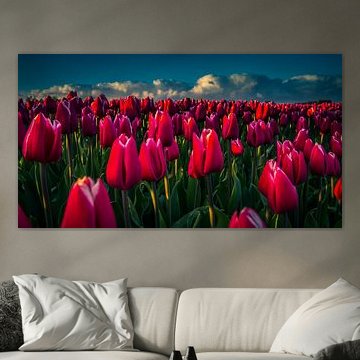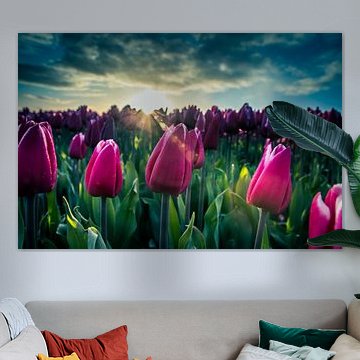 Flowers are a classic subject in art, they are super vibrant, and can have many meanings, which can change from culture to culture. Do you want to include these beautiful plants in your interior with wall art for their colours, or to give your interior a secret meaning? Our artists have made an abundance of flower artworks, so buy your favourite from our Flower collection. Buy a photo print of tulip fields on canvas, or order an abstract painting of flowers on poster, wall paper, and many more materials.