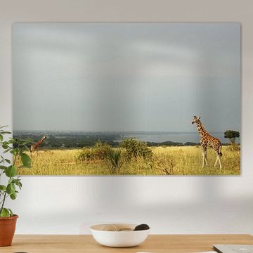 The elegance and purity of the wild giraffe can be seen in this giraffe collection full of beautiful art works. Buy your favourite giraffe wall art on canvas, glass, photo wallpaper and more. Or buy fun jungle illustration posters with giraffes for the children's room. There is a giraffe art print for every room and style available. You can also have the giraffe illustration, painting or photo customized to your preferred sizes.