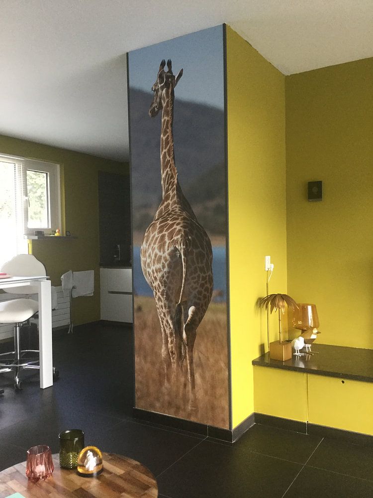 A children's bedroom is a good spot for giraffe art, where the playful yet calm character of these artworks creates a welcoming atmosphere without being overly busy. Choose softer tones like taupe and beige for a soothing bedtime environment, or go with vibrant blues and olive greens to spark curiosity and imagination. Pair a giraffe print in Canvas or Poster with wooden shelves, soft lighting, and nature-inspired textiles to tie the look together. The gentle presence of giraffe imagery encourages a sense of wonder while keeping the room feeling grounded and comfortable.