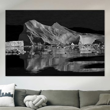 Iceland - Giant ice floes with boat between and glacier mountain by adventure-photos