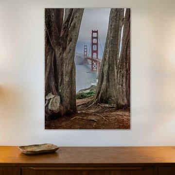 The Golden Gate Bridge Art Collection captures the iconic beauty and impressive presence of one of the world's most famous bridges. This collection features paintings, photographs, and illustrations that showcase the bridge's distinctive red towers and elegant design, often set against misty landscapes or the vibrant blue skies of San Francisco. Each artwork highlights the majestic appearance and engineering marvel of this structural achievement. Ideal for lovers of monumental architecture and breathtaking landscapes, this collection offers an elegant and powerful addition to any space. The artworks are available in various sizes and on high-quality materials like canvas, ArtFrame, poster, and more.
