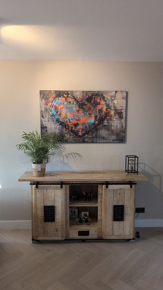 Graffiti makes a strong impression in the living room, where its bold colors and expressive energy become an instant conversation starter. The brown, taupe, blue, mauve, and beige tones create depth without overwhelming the space, while the powerful mood adds character to your walls. Style graffiti above a sofa or sideboard to anchor the room, or choose a large-format piece as a focal point on your main wall. This collection pairs well with modern and industrial interiors, complementing leather furniture, metal accents, and minimalist decor with ease.
