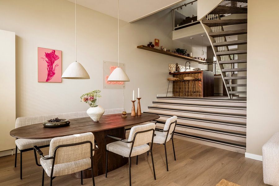 The beige, taupe, brown, and terracotta tones in Graphics Botanicals align perfectly with Scandinavian and bohemian interiors. In a Scandinavian space, combine the softer beige and taupe artworks with light wood and white walls for a clean, serene atmosphere. For a bohemian setting, choose the warmer terracotta and brown pieces, and style them alongside rattan furniture, patterned cushions, and layered rugs. The blue accents work well in both styles as calming counterpoints.