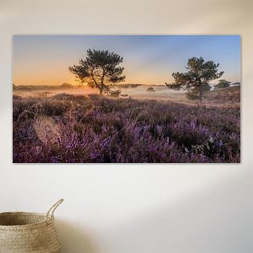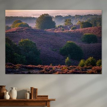 The heath, with its vast purple fields and softly rolling hills, exudes natural tranquility and serene calmness. In late summer, the blooming heath transforms the landscape into a sea of color. With our heath wall art, you can bring the unique charm of this landscape into your home. Available on canvas, plexiglass, and aluminum, these pieces fit perfectly into any space. Be inspired by the peaceful splendor of the heath and bring a touch of nature into your interior.