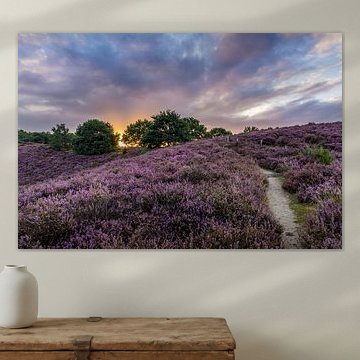 The heath, with its vast purple fields and softly rolling hills, exudes natural tranquility and serene calmness. In late summer, the blooming heath transforms the landscape into a sea of color. With our heath wall art, you can bring the unique charm of this landscape into your home. Available on canvas, plexiglass, and aluminum, these pieces fit perfectly into any space. Be inspired by the peaceful splendor of the heath and bring a touch of nature into your interior.