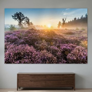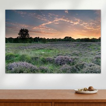 The heath, with its vast purple fields and softly rolling hills, exudes natural tranquility and serene calmness. In late summer, the blooming heath transforms the landscape into a sea of color. With our heath wall art, you can bring the unique charm of this landscape into your home. Available on canvas, plexiglass, and aluminum, these pieces fit perfectly into any space. Be inspired by the peaceful splendor of the heath and bring a touch of nature into your interior.