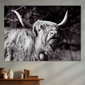 Want to buy majestic highland cow paintings, wallpaper, or photo art? The highland cow wall art collection can be printed in several high-quality materials. Think of metal, aluminium, glass, or canvas. Create calmness in the room with wallpaper from a photo of a highland cow in nature. Or buy a robust highland cow portrait on metal. There is highland cow wall art available for every style and interior.