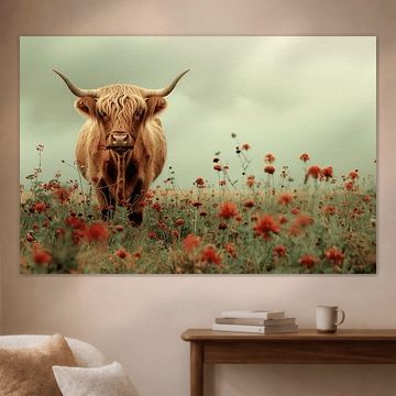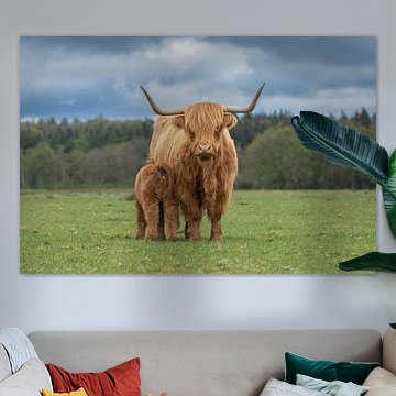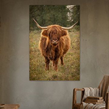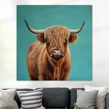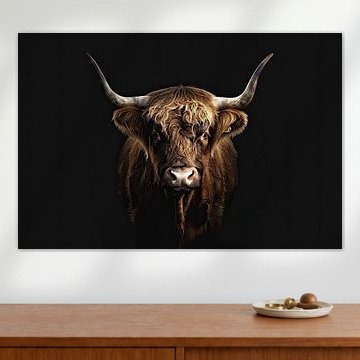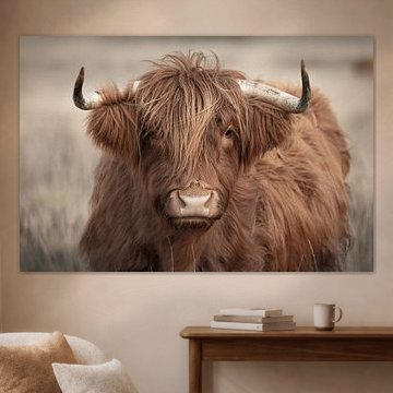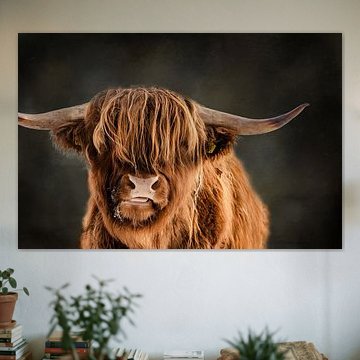 Want to buy majestic highland cow paintings, wallpaper, or photo art? The highland cow wall art collection can be printed in several high-quality materials. Think of metal, aluminium, glass, or canvas. Create calmness in the room with wallpaper from a photo of a highland cow in nature. Or buy a robust highland cow portrait on metal. There is highland cow wall art available for every style and interior.