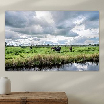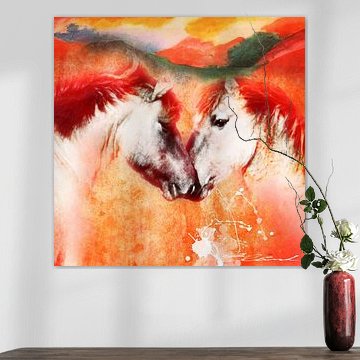 Ornate horses as wall art makes the room elegant and character. Buy a horse painting on large photo wallpaper to make a statement. Or buy horse art prints on canvas with a golden frame or as a glass painting. Our diverse wall art collection consists of paintings of horses on the beach, colourful horse paintings, modern abstract horse paintings and beautiful horse posters for the children's room.